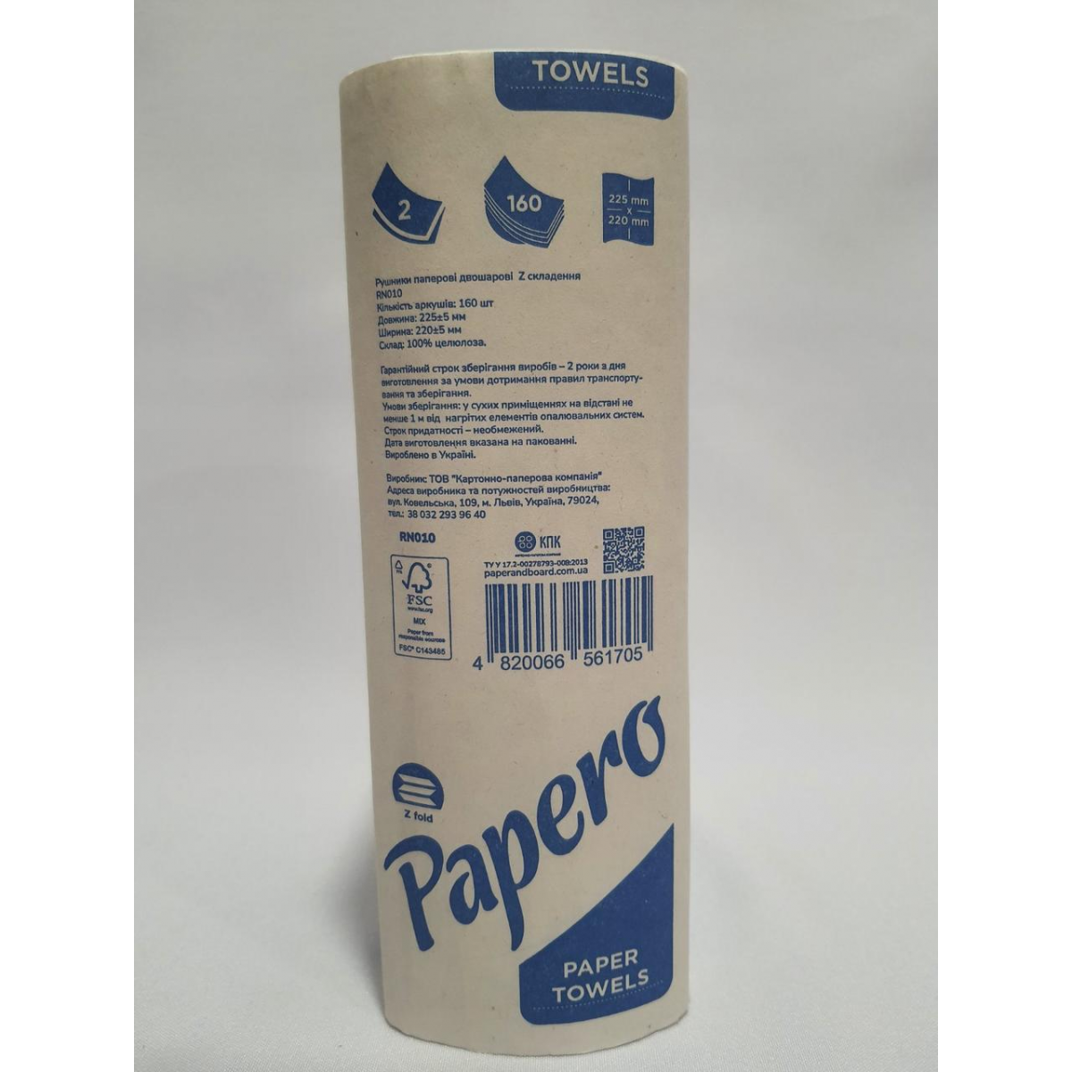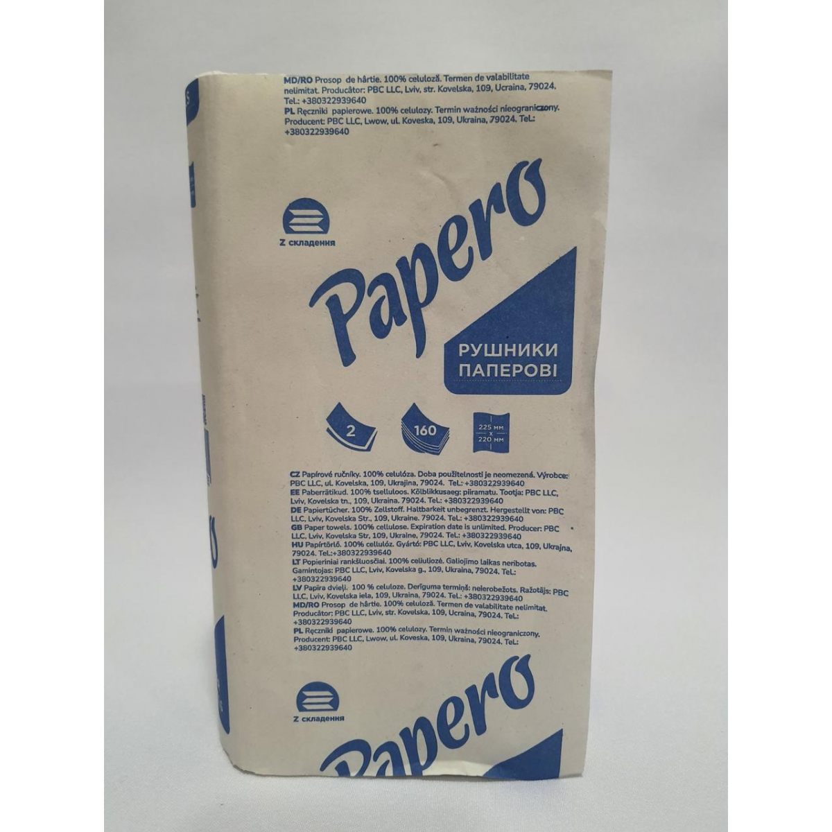 Рушник паперовий “Papero“ Z-складання 225×220 мм 160 листів