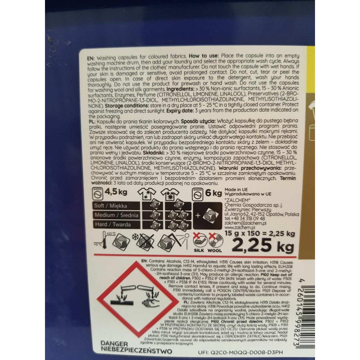 Капсули для прання всіх типів тканин Power Wash. Призначений для прання виробів із будь-яких типів тканин, дбайливо відпирає будь-які забруднення й видаляє плями. Підходить для всіх різновидів пральних машин і для ручного прання. Не викликає алергічної реакції та не подразнює шкіру. Безпечний для довкілля, не містить фосфатів, хімічних вибілювачів, ферментів і запашників, зменшує жорсткість води, запобігаючи утворенню накипу на деталях пральної машин. Склад гелю відповідає вимогам ЄС.