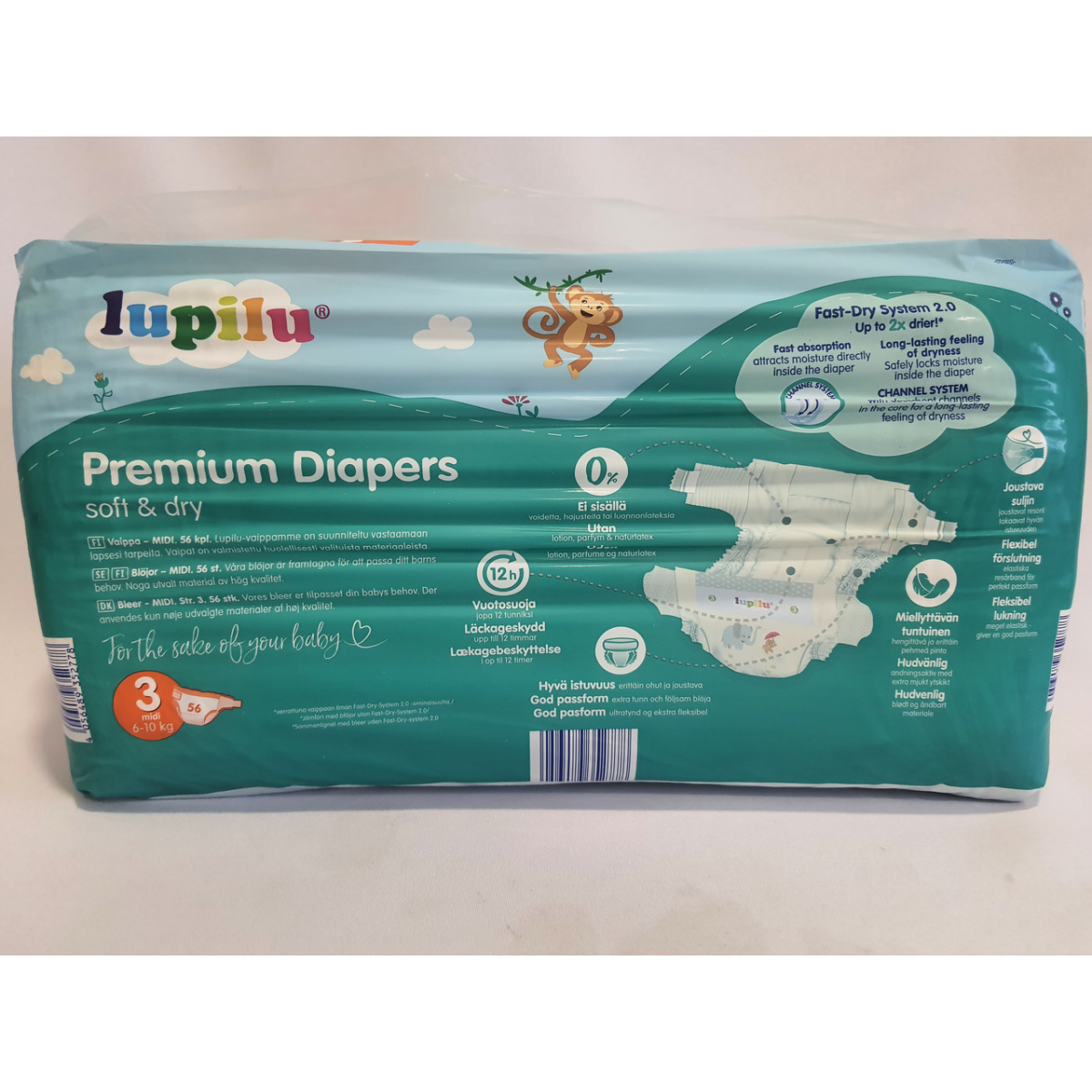 Підгузки Lupilu soft&dry підгузники преміум 3 розміру (6-10 кг) 56 шт